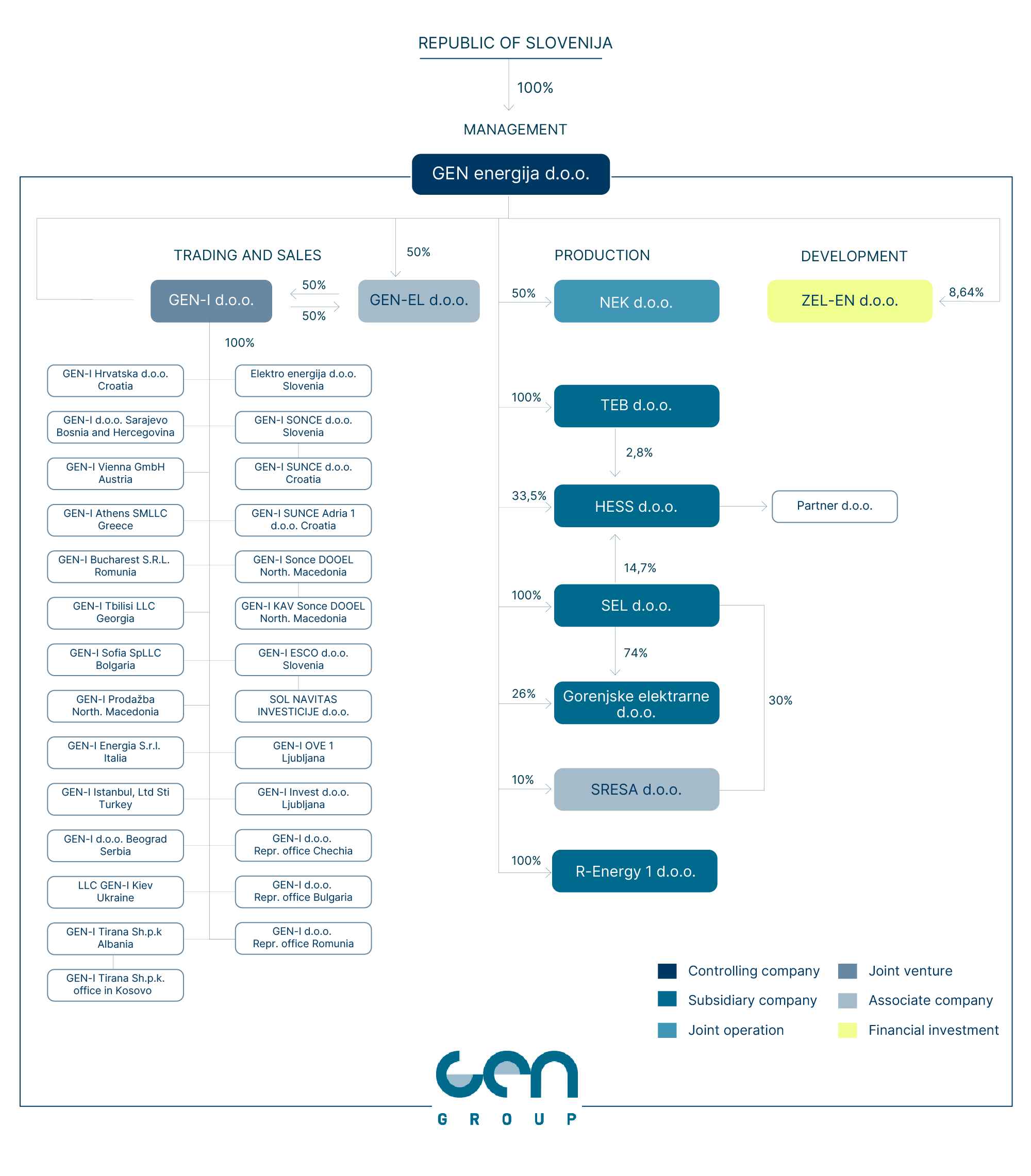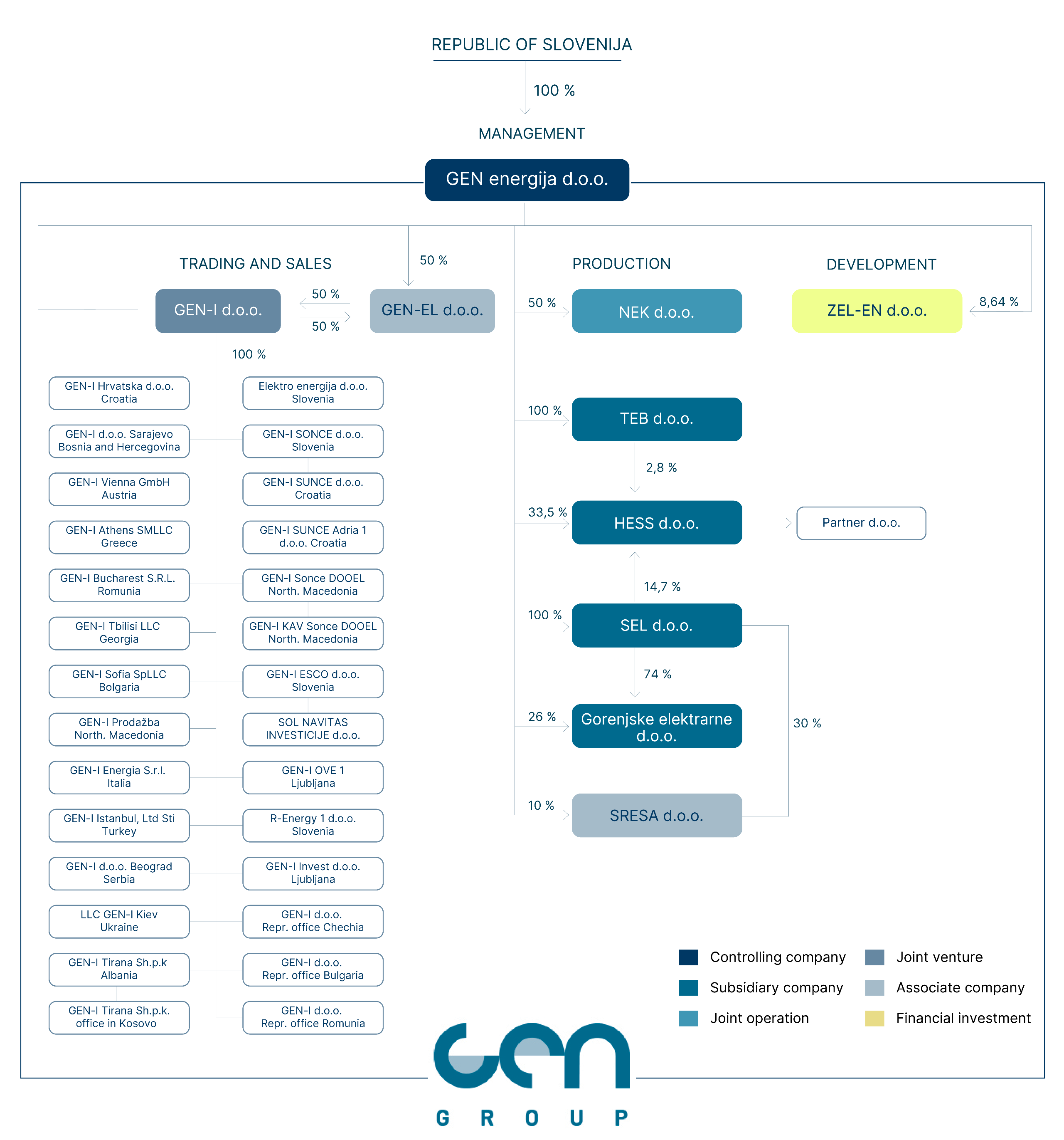 The GEN Group brings together leading Slovenian energy companies that jointly deliver a reliable, safe and competitive electricity supply. Our strength is based on sustainable, low-carbon sources — nuclear, hydropower and solar energy — through which we are building a future oriented towards a stable and clean energy environment.